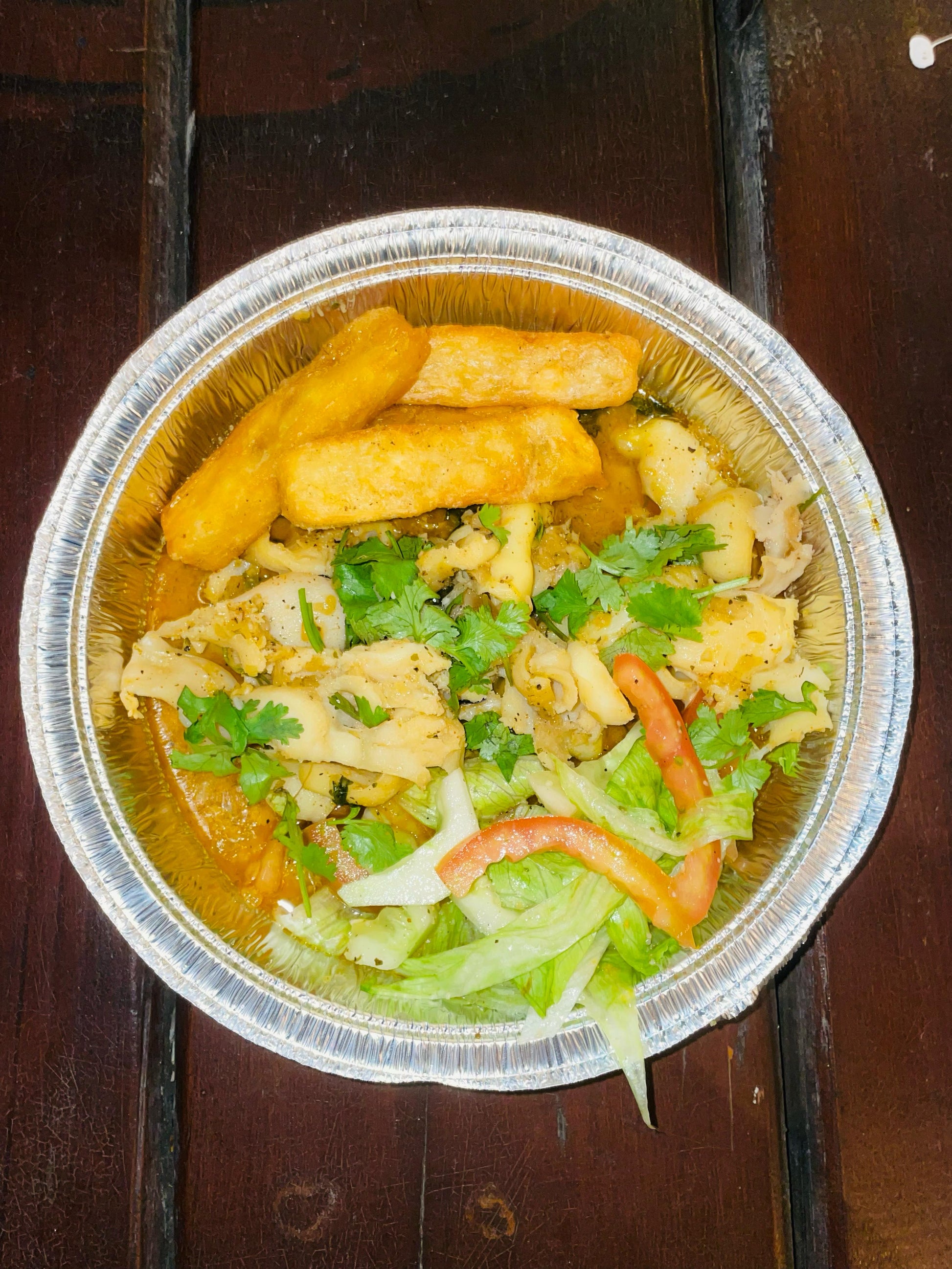 Caracol Al Ajillo o Cajun, acompañado de Tostones o Yuca y Ensalada Verde o Elote